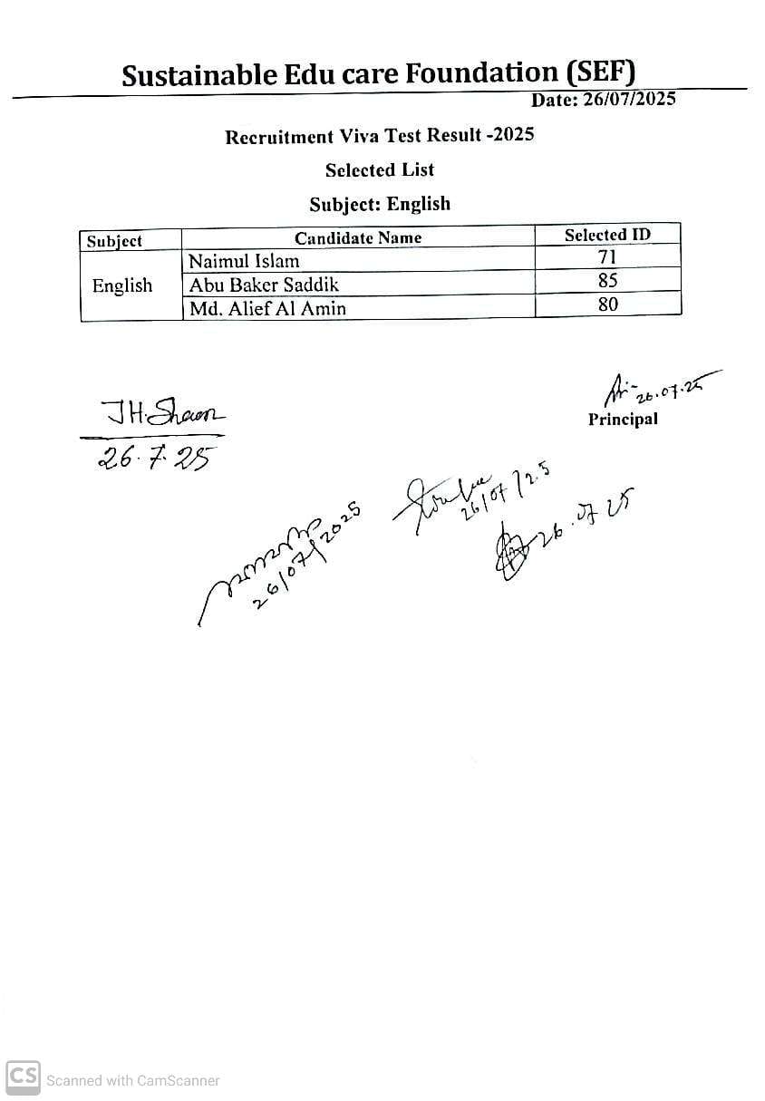 Recruitment Viva Test Result (26-07-2025)